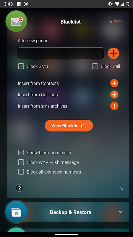 Versi lama AntiSpam - Block SMS, Call & Backup SMS, CallLog