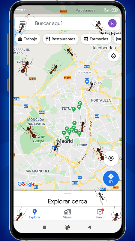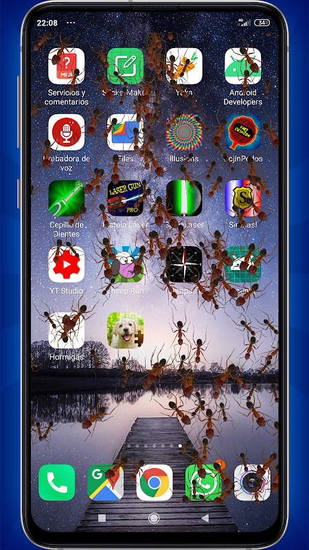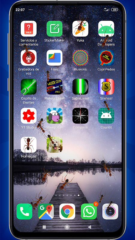 Nikmati semut-semut ini yang berjalan di atas aplikasi lain untuk menipu rakan-rakan anda atau untuk berehat!