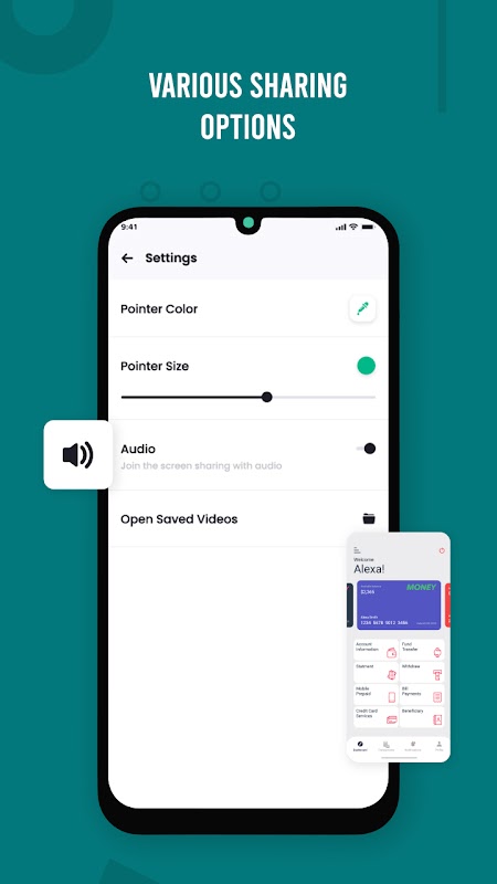 Apl Perkongsian Skrin Mudah Alih Langsung untuk berkongsi apa-apa perbualan suara secara langsung dengan rakan dan saudara anda dan berkongsi skrin mudah alih anda untuk disiarkan secara langsung pada skrin mudah alih dengan rakan.