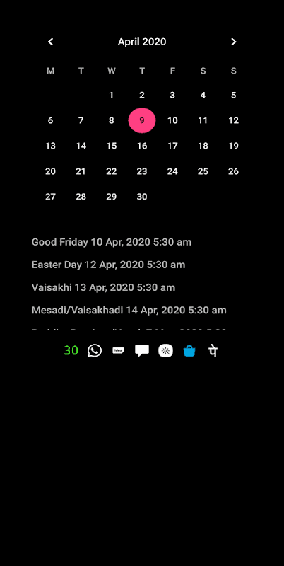 Tap on hold on date to see calendar events(this will give you a quick glance of upcoming events for two months period)