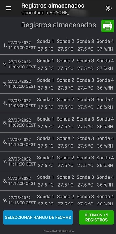 Sambung melalui Bluetooth ke termograf yang diluluskan APACHE anda.