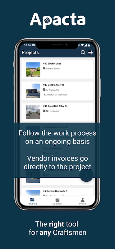 Apacta menyatukan tugas-tugas pentadbiran industri kraf menjadi satu aplikasi mudah dan mesra pengguna. Tidak ada jadual waktu yang lebih kerinting, pengurusan kes yang tidak teratur dan kerumitan waktu pentadbiran. Dapatkan gambaran keseluruhan penggunaan masa, pengurusan bahan, dokumentasi dan jaminan kualiti untuk setiap projek. Alat dalam talian yang mudah dan selamat untuk profesional yang ingin mengautomasikan tugas manual dan pentadbiran.