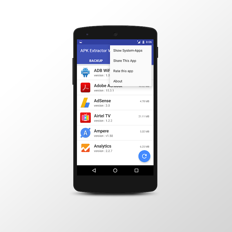 *Easily Back-Up/Extract apk of Installed Applications With Just A Simple Click.