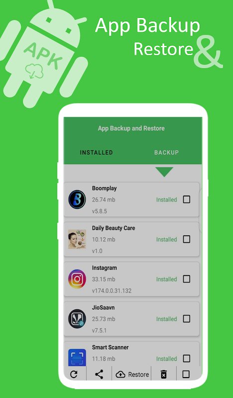 Apps Backup and Restore is used to backup your installed apps to your internal/SD card and restore backup apps on your device