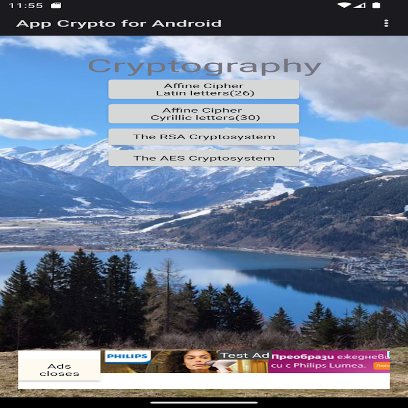 Aplikasi ini menyediakan kaedah berikut untuk penyulitan dan penyahsulitan: affine cryptosystem untuk teks Latin (26 huruf), affine cryptosystem untuk teks Cyrillic (30 huruf), RSA cryptosystem dan АSЕ cryptosystem.