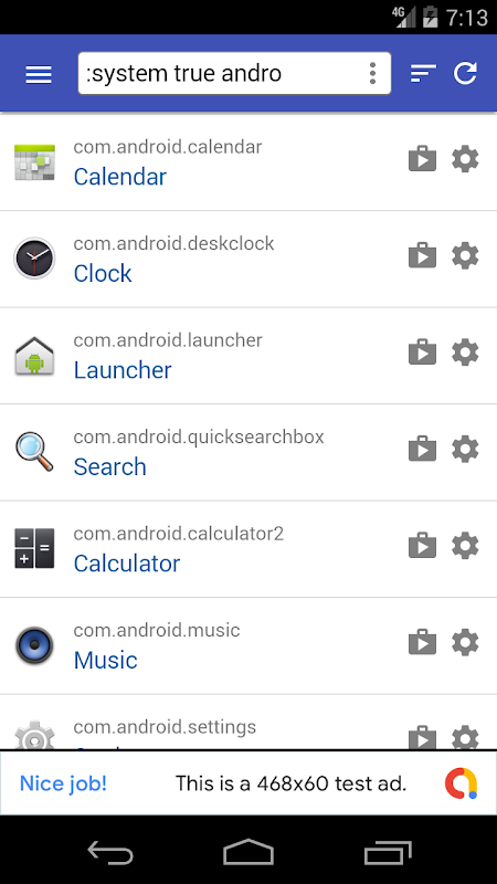 * Senarai semua aplikasi yang dipasang akan ditunjukkan dengan nama pakej mereka apabila aplikasi dilancarkan.
