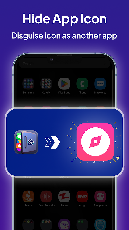 Sembunyikan Kunci Aplikasi dengan pandangan biasa dengan ciri penyamaran. Hidupkan aplikasi kunci ke dalam kalkulator, kalendar, atau ikon aplikasi yang tidak berbahaya. Penyamaran pandai ini memastikan tiada siapa yang tahu anda menggunakan kunci loker telefon atau aplikasi untuk melindungi aplikasi dan fail anda.