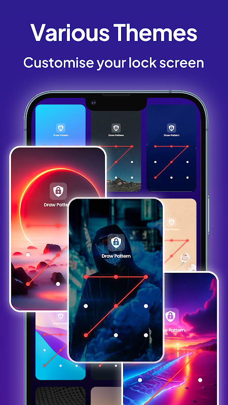 Buat Kunci Aplikasi anda sendiri dengan tema yang disesuaikan dan reka bentuk skrin kunci. Pilih dari pelbagai tema bertenaga dan bergaya untuk memperibadikan skrin kunci anda dan menjadikannya lebih menarik secara visual. Padankan estetika telefon anda sambil mengekalkan aplikasi anda dengan selamat.