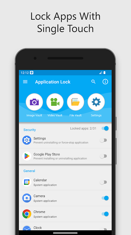 Lindungi privasi anda dengan kunci aplikasi yang berkuasa dan mudah digunakan serta bilik kebal yang selamat. Kunci aplikasi, sembunyikan foto dan video peribadi, dan pastikan fail penting selamat daripada akses tanpa kebenaran.