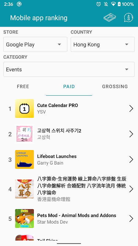 Versi lama App Ranking - Analytics app