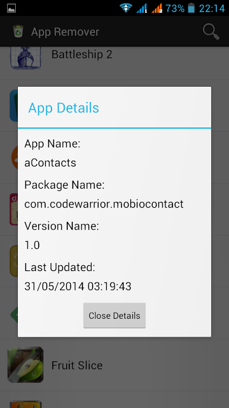 A simple application to remove user applications installed on device. Click an application in the list to view it's details or remove it.