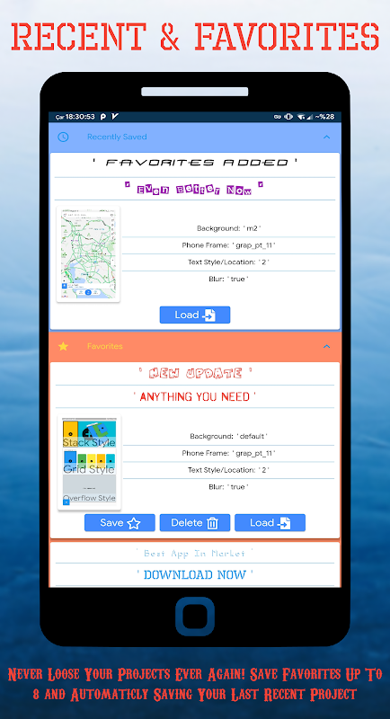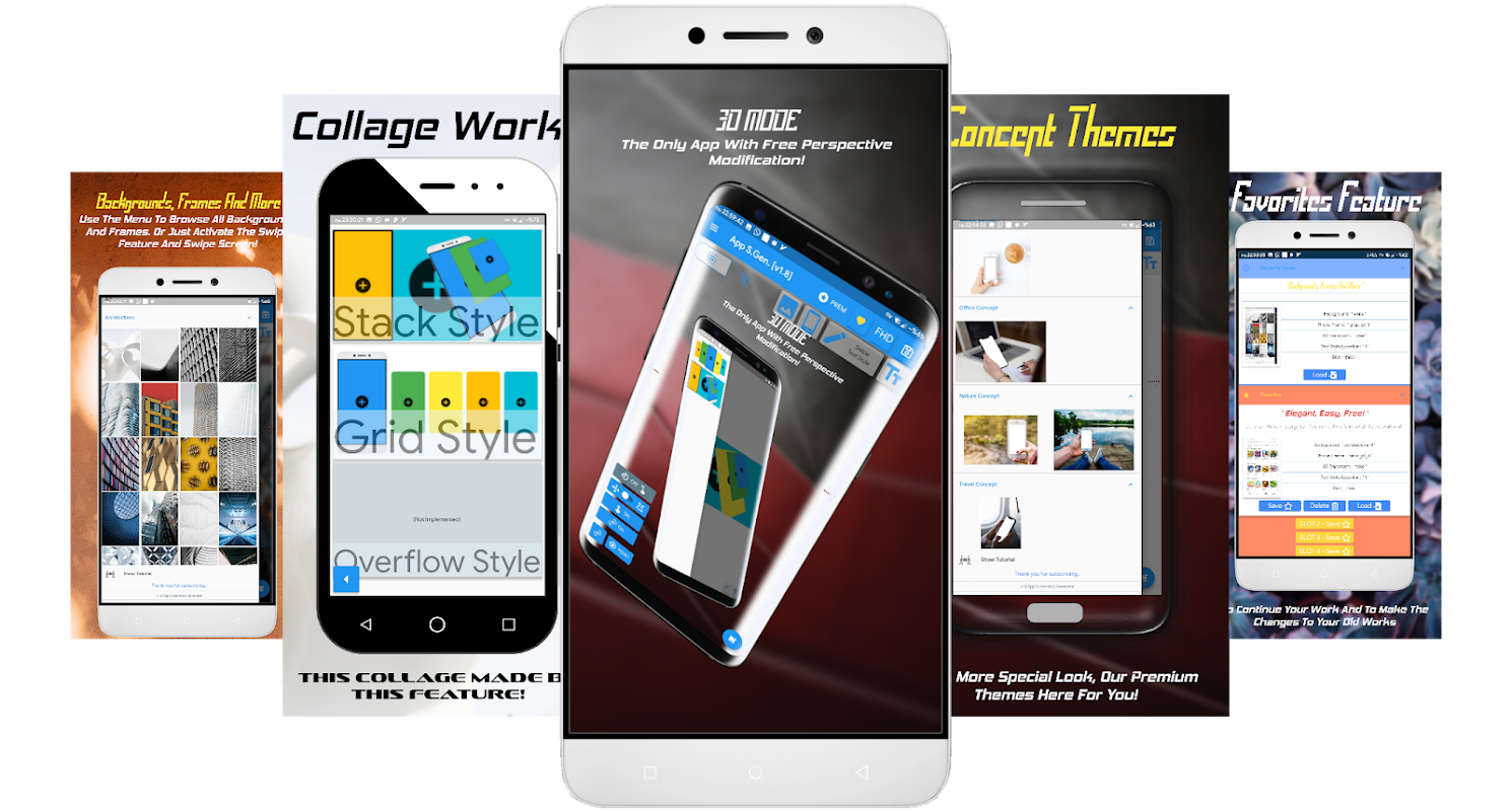 4) Bingkai telefon; Pilih mana-mana bingkai telefon yang anda mahu. Satu-satunya App dengan bingkai yang realistik dan perspektif tersedia!