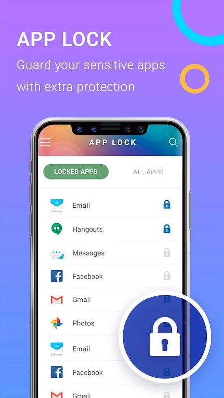 ● Protect your message by locking your social apps with AppLock. Keep your social data security from prying eyes. Give your phone total security protection.