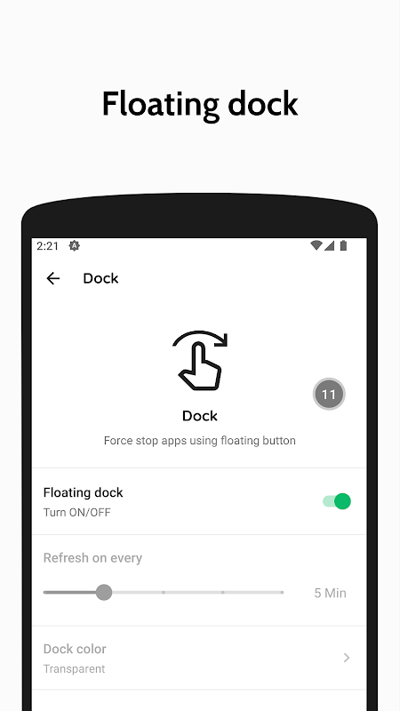 Dok terapung akan membantu anda memaparkan sejumlah apl yang sedang berjalan di atas apl lain dan membolehkan anda menghentikan semua apl yang sedang berjalan dari mana-mana sahaja.