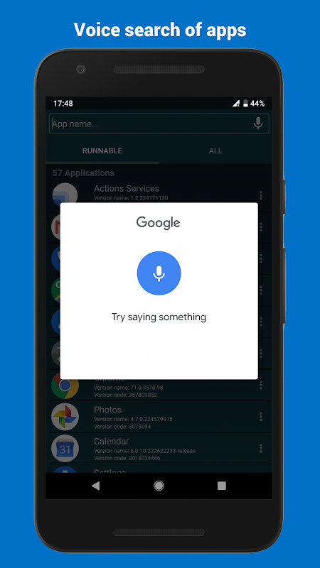 This application is designed to facilitate the launch and management of other applications on your device. You can quickly and easily perform many actions on applications, installed on your device. The intuitive user interface, allows you to feel comfortable with your device. Below is presented a list of some of the actions, you can perform with the aid of the application: