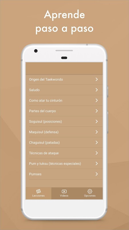 Pelajari taekwondo langkah demi langkah dengan lebih daripada 500 tutorial video dalam bahasa Sepanyol dengan cara yang menyeronokkan dan berkesan!