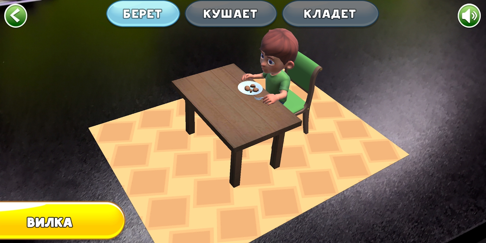 Пособие представляет собой набор из 31 карточки с изображениями предметов домашнего обихода, которые можно скачать внутри приложения. При наведении камеры смартфона или планшета на карточку, активируется дополненная реальность, и картинка трансформируется в анимацию, показывающую, как ребенок пользуется предметом. Анимация сопровождается стихотворениями, которые озвучил российская звезда кино и театра Данила Козловский.