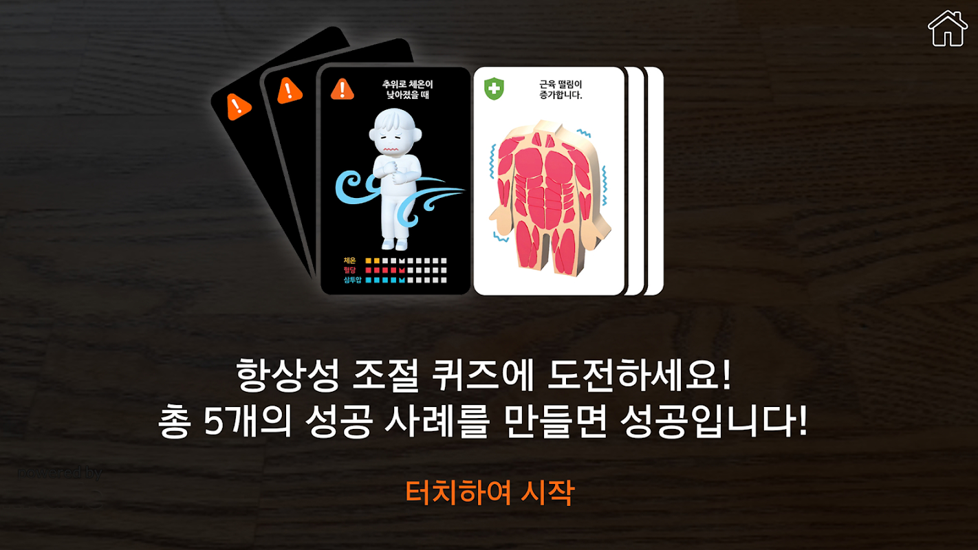 - Kad ini hanya boleh digunakan dalam kuiz kawalan homeostasis. Avatar yang mengalami homeostasis terganggu ditambah dan kuiz homeostasis dibentangkan. Untuk menyelesaikannya, cari dan gabungkan kad maklumat yang sesuai. Anda mesti meletakkan kad maklumat tepat pada slot kosong yang ditunjukkan di sebelah kad soalan untuk mengenal pasti jawapan yang betul atau salah. Anda boleh memahami dengan jelas konsep dengan mengambil kuiz peraturan homeostasis.