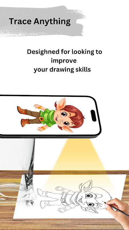 Pengesanan Imej: Surih imej terus dari skrin anda ke kertas dengan mudah. Hanya pilih imej dan biarkan apl membimbing tangan anda untuk mendapatkan garis besar dan butiran yang sempurna.