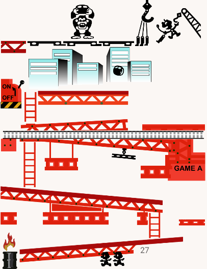 Kisah ini berlaku dalam pembinaan di mana pemain mesti mengelakkan halangan dan menembak jatuh gorila.
