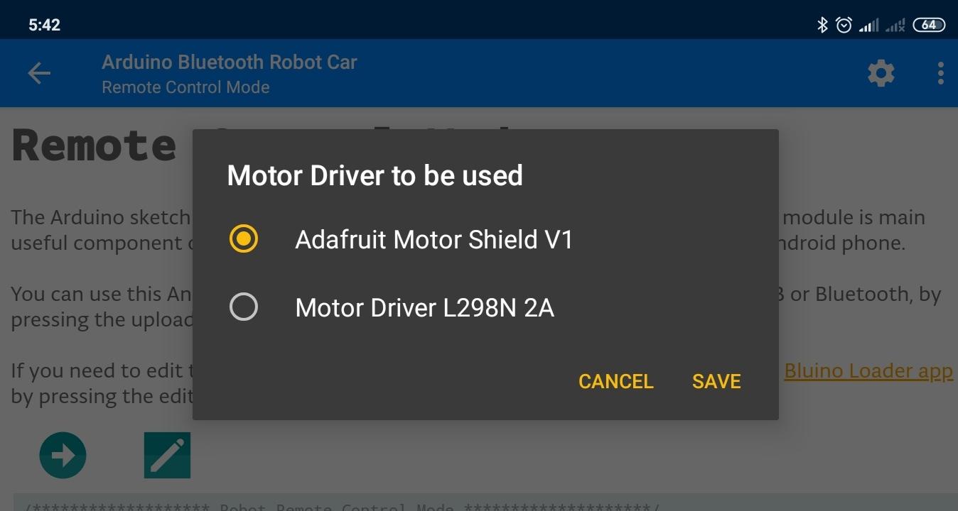 Tutorial: https://www.instructables.com/id/Arduino-Robot-Car-Bluetooth-Controlled-and-Program/