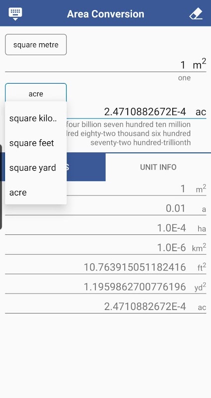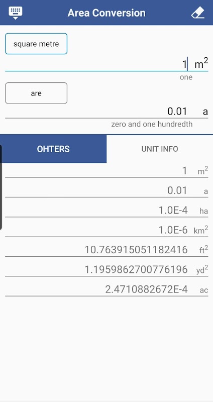 직관적인 UI로 여러가지 단위의 넓이를 상호 변환할 수 있는 앱입니다.