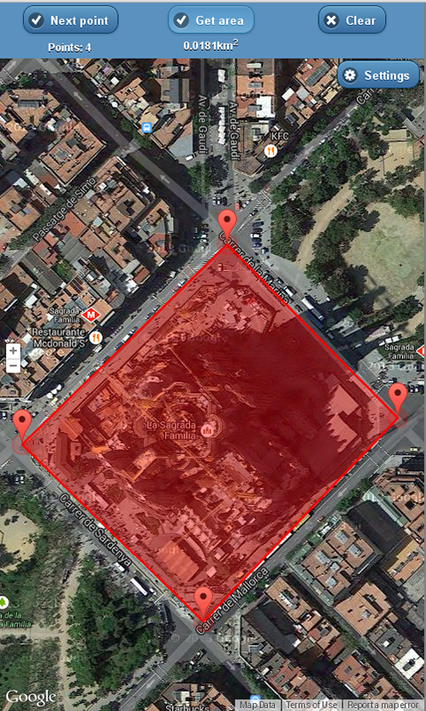 4. Tekan butang "Kawasan Dapatkan" untuk mempunyai hasil pengiraan kawasan di bawah butang dengan sebuah poligon merah yang menandakan pada peta.