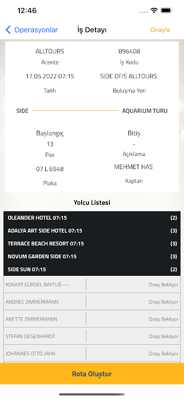 Selepas memuat turun aplikasi, anda boleh log masuk dan melihat pemindahan yang akan anda lakukan semasa lawatan anda, melihat di mana kenderaan anda berada, dan menyemak senarai penumpang anda. Dalam butiran pemindahan anda, anda boleh menyemak hotel mana yang akan anda lawati. Anda boleh melihat maklumat lokasi hotel dan jarak anda serta-merta. Anda boleh melihat berapa lama anda telah pergi dengan mendapatkan arah ke hotel anda.