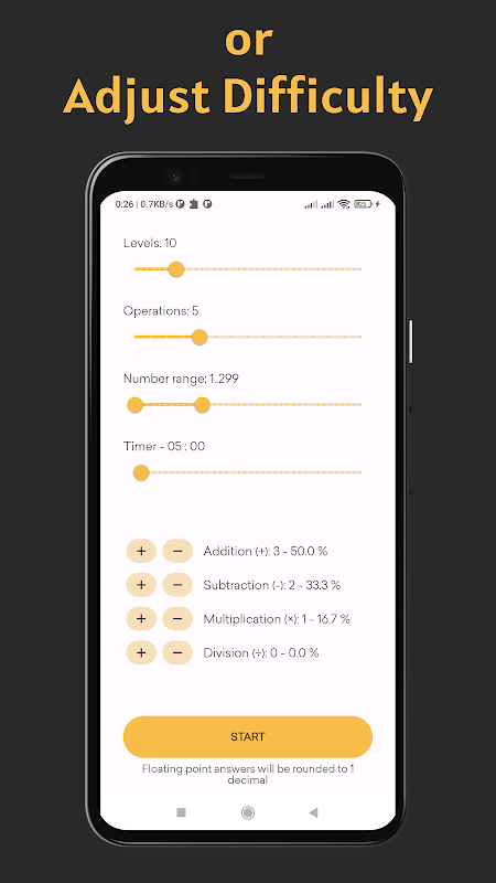 Permainan kuiz, dengan tugasan airthmetik dengan kesukaran yang berbeza.