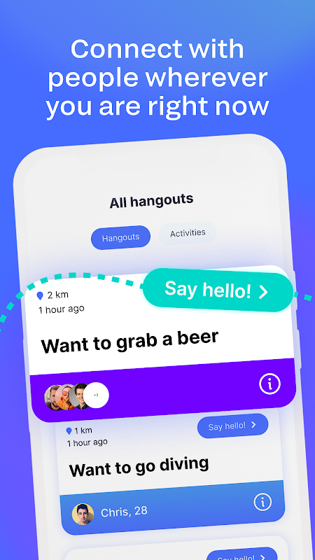 "APP pengalaman masa nyata yang membolehkan anda berhubung dengan orang ramai dan aktiviti di kawasan setempat anda dengan mudah."
