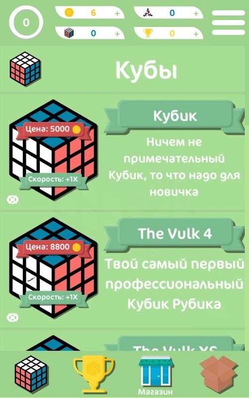 Click on the Rubik's Cube, earn coins, buy upgrades and other cubes in the store!