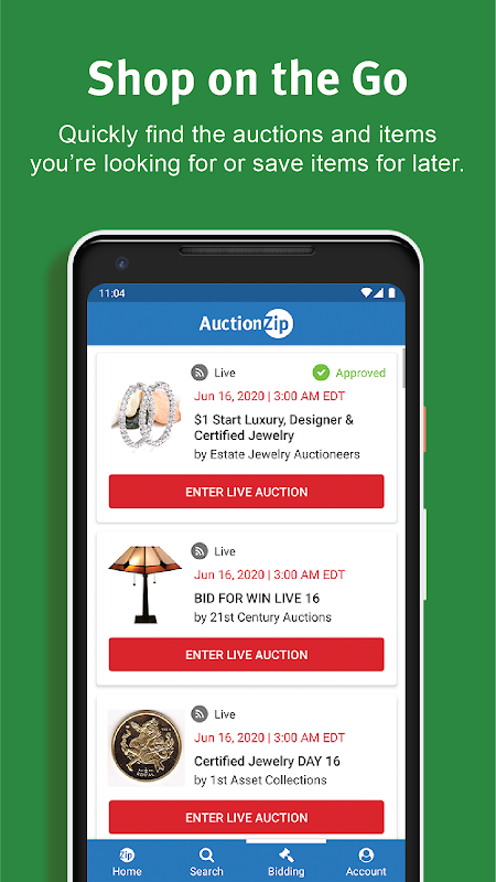 Inventori kami yang pelbagai termasuk segala-galanya dari duit syiling, untuk memorabilia Elvis, lelongan seni dan barangan antik berhampiran anda. Sekarang, dengan aplikasi AuctionZip, anda boleh merasai keseronokan memburu dan membantu menjamin hadiah anda dari mana-mana sahaja.