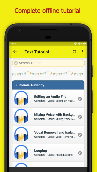 The most complete tutorial discusses the audacity application for android. In this application there is a complete tutorial began basics audacity, menubar, effects, tricks, shortcuts, preferences, and so on. This audacity tutorial application of full offline so that it can be run without the need to connect to the Internet.
