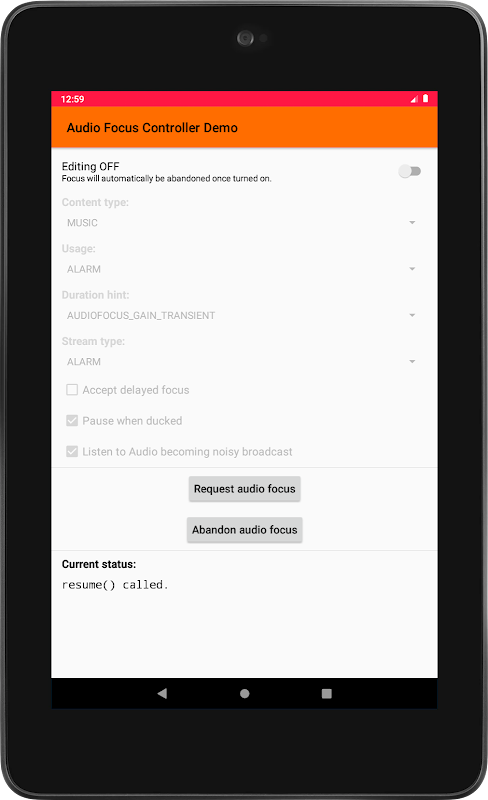 Untuk pembangun Android sahaja. Aplikasi demo untuk perpustakaan AudioFocusController.