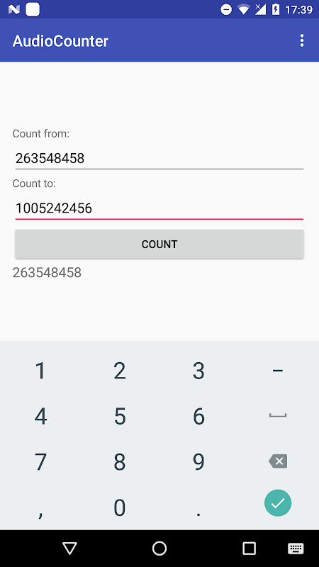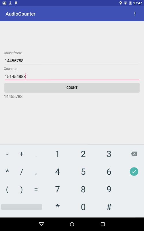 Aplikasi Audio Counter dikira antara nombor sewenang-wenangnya terhadap output audio.