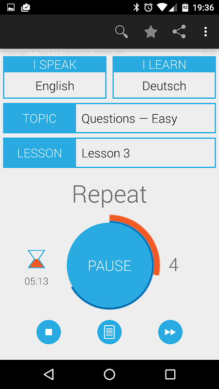 AudioBrain Bahasa sudah mengandungi 585 frasa dalam 7 bahasa.