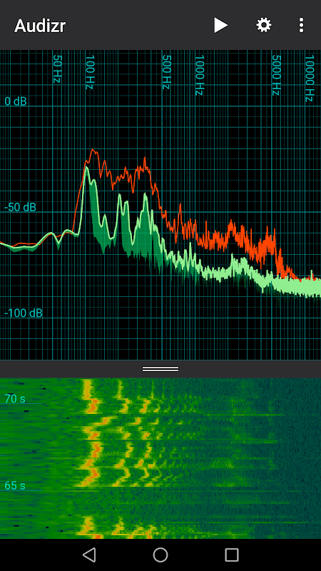 Masa nyata audio ketepatan spektrum untuk profesional dan peminat bunyi. analisis spektrum dengan Audizr mendedahkan butiran cemerlang dalam bunyi ditangkap dari mikrofon. Memantau kandungan frekuensi bunyi penceramah studio rumah atau sistem PA dengan ketepatan yang lebih besar daripada satu telinga manusia yang dapat mencapai. Zum mudah di atas maklumat yang menarik melalui antara muka sentuhan intuitif, dan menyesuaikan peralatan anda dengan sempurna.