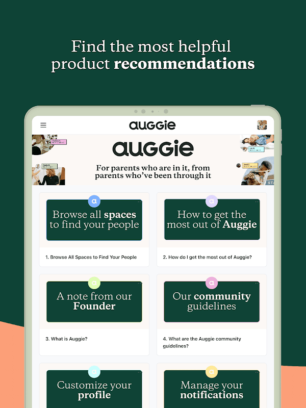 Apl Komuniti Auggie direka untuk ibu bapa yang mencari nasihat, persahabatan dan petua praktikal untuk membantu menjadikan perjalanan keibubapaan lebih menyeronokkan dan kurang sunyi. Apabila anda melawati apl kami, harapan terbesar kami ialah anda berasa dilihat.