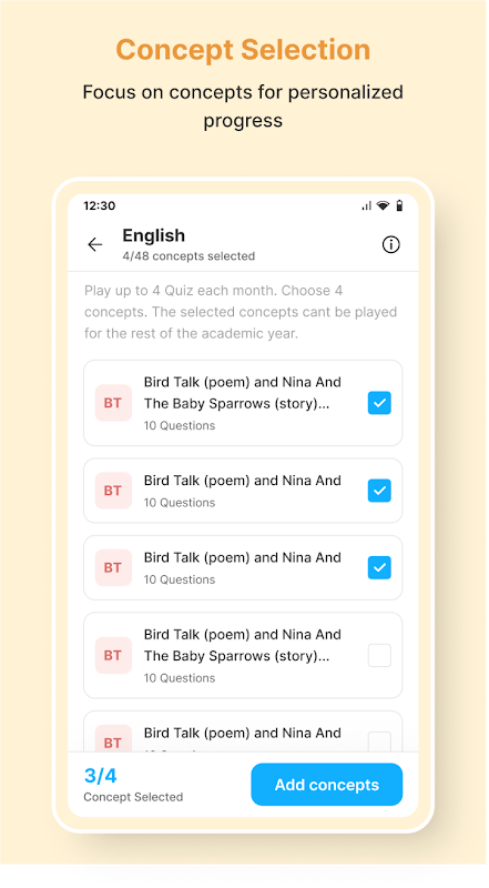 Pelajar Memenangi Biasiswa: Pelajar mencuba kuiz dan jika mereka mencapai prestasi sasaran (80%), mereka menerima INR 50 sebulan dan setiap pelajar boleh menerima maksimum INR 1,000 sebulan sebagai biasiswa percuma. Jumlah itu dipindahkan ke dalam dompet mudah alih ibu bapa mereka.