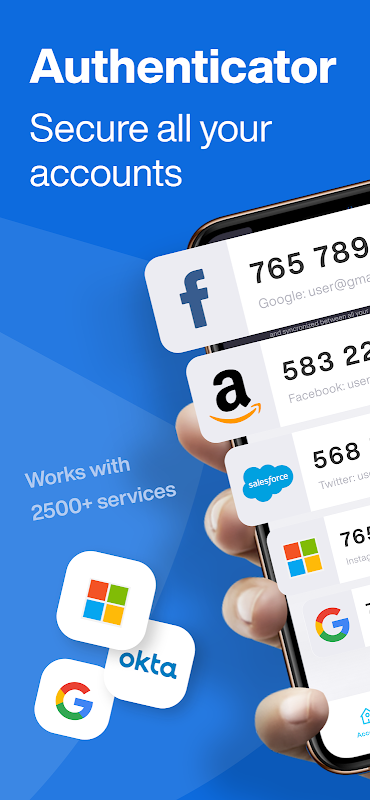 Gunakan Universal Authenticator untuk lebih dari 2500+ layanan seperti: Microsoft, Google, Duo, Okta, Intune Company Portal, Battle net, Lastpass, Authy, id me, Pingid, Salesforce, Battlenet, Secure ID, RSA, Blizzard, Twilio, Thomson Reuters dan banyak lagi.