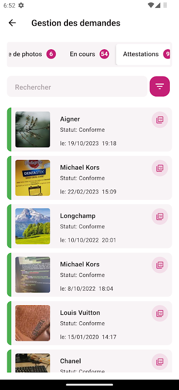 Terima sijil pematuhan atau ketidakpatuhan, yang membuktikan kesahihan item anda.