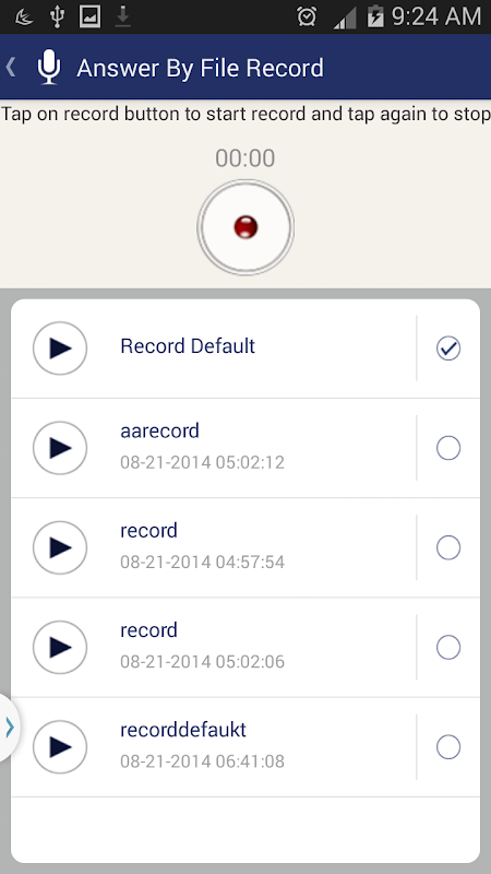 - Auto answer incomming call by your voice record (audio file).