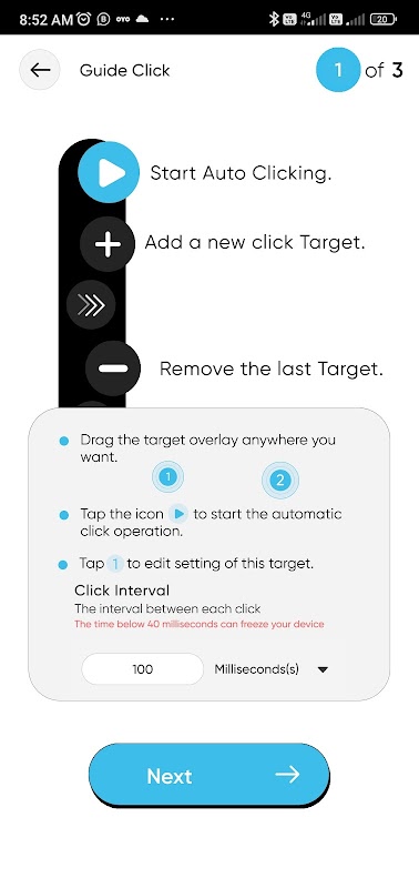 Auto Clicker – Auto Tap ialah alat mensimulasikan klik berulang kali mengikut tetapan pengguna. Tiada akses root! Anda boleh menetapkan kedudukan klik, urutan klik, kekerapan dan merekod gerak isyarat leret di mana-mana sahaja. Pengklik skrin automatik memudahkan klik berterusan pada telefon anda.