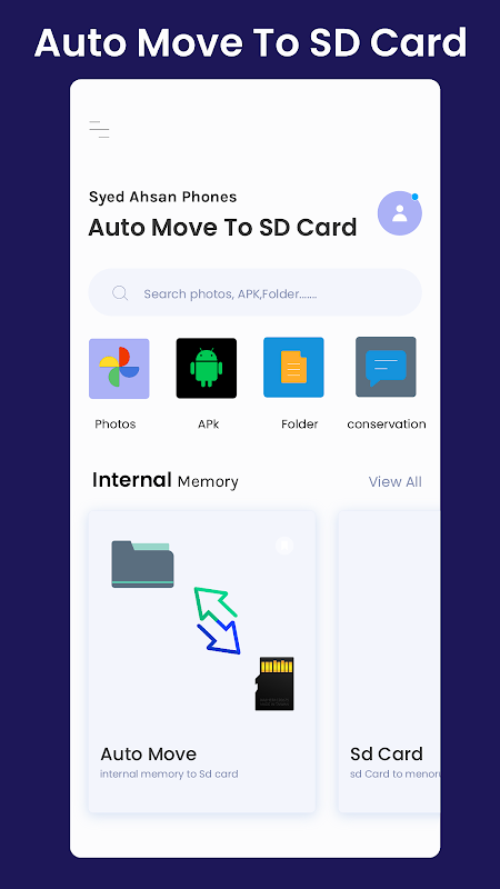 Pilih fail tertentu atau keseluruhan direktori dengan mudah dengan hanya beberapa ketikan. Antara muka intuitif kami membolehkan anda menyusun dan menyandarkan fail anda dengan mudah berdasarkan sambungan fail, menjadikan proses lebih pantas dan cekap. Aplikasi ini akan membantu pengguna mengekalkan ruang memori dalam mudah alih mereka. Fail media menangkap ruang maksimum dalam mudah alih, dengan aplikasi ini anda boleh memindahkan fail media secara automatik ke kad sd untuk menjimatkan memori telefon. # Ciri Untuk Pengguna Tanpa Kad SD