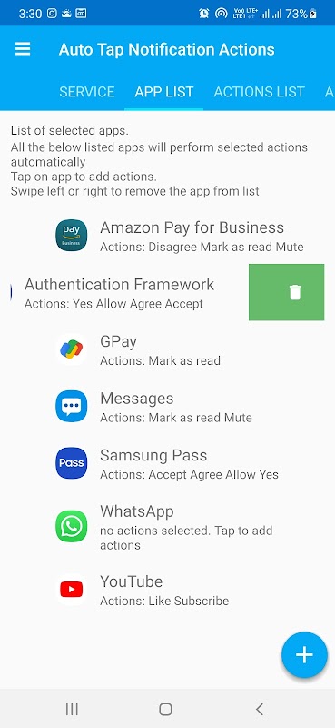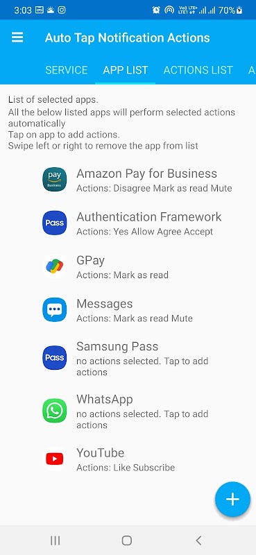 Seperti pesan teks sms baru tiba dan mendapat pemberitahuan dengan tindakan seperti MARK AS READ, aplikasi ini akan mengetuk secara otomatis MARK AS READ.