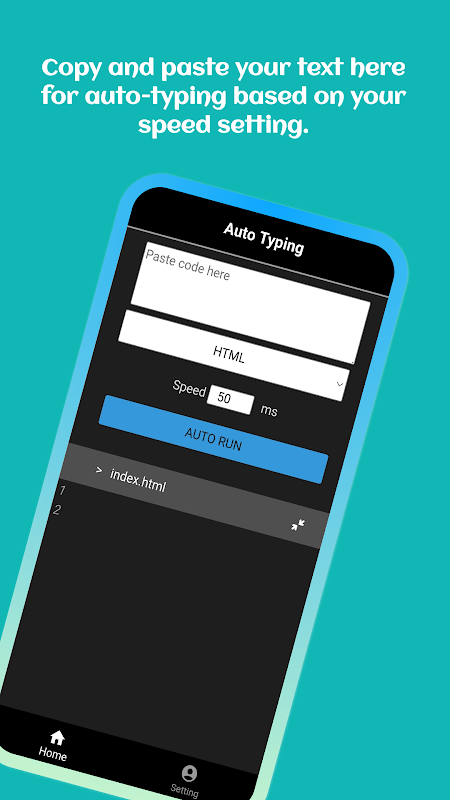 Salin dan tampal teks anda untuk auto-taip dengan kelajuan yang disediakan (ms).