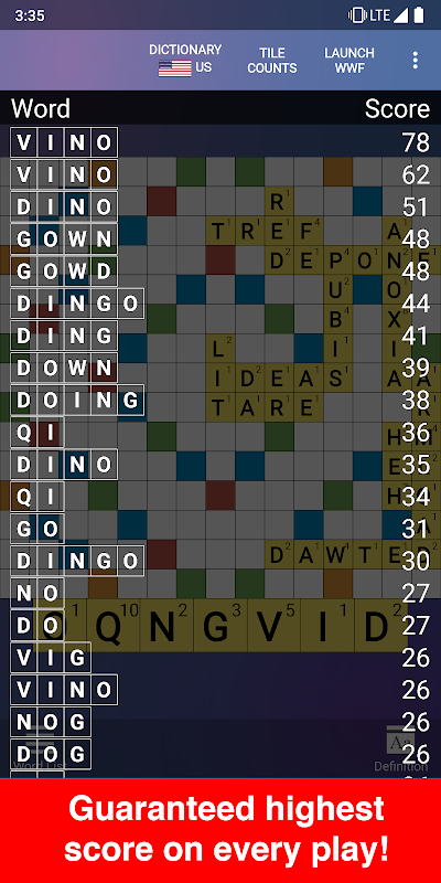 Get your best plays automatically with the best Words With Friends cheat app!