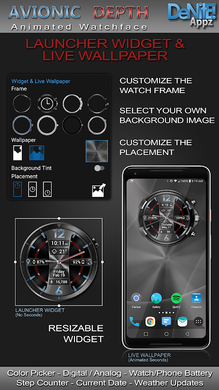 Widget Wajah Jam Tangan Animasi & Bateri Kertas Dinding Langsung, Tarikh, Cuaca, Pembilang Langkah