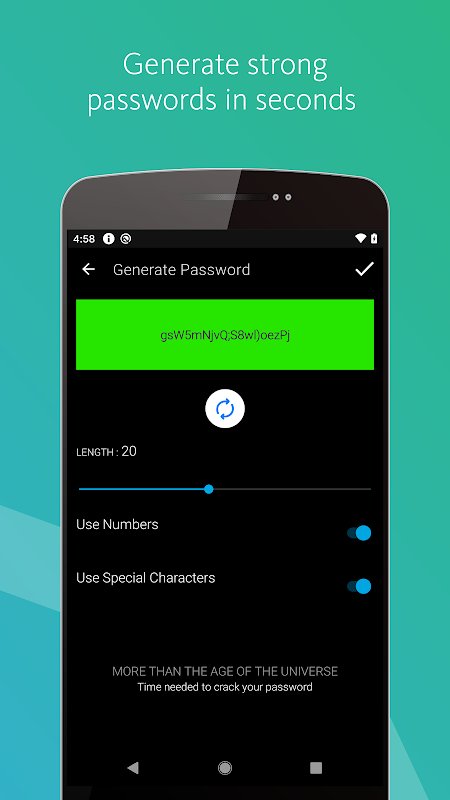 Ucapkan selamat tinggal kepada nota tulisan tangan yang mencipta huru-hara di meja anda. Masa telah berakhir apabila anda perlu mencatat setiap kata laluan dan idea. Selain itu, tiada lagi kesukaran untuk mencipta kata laluan baharu atau menetapkan semula kata laluan lama. Penyusun kata laluan untuk telefon anda memudahkan urusan kerja dan kehidupan peribadi anda.