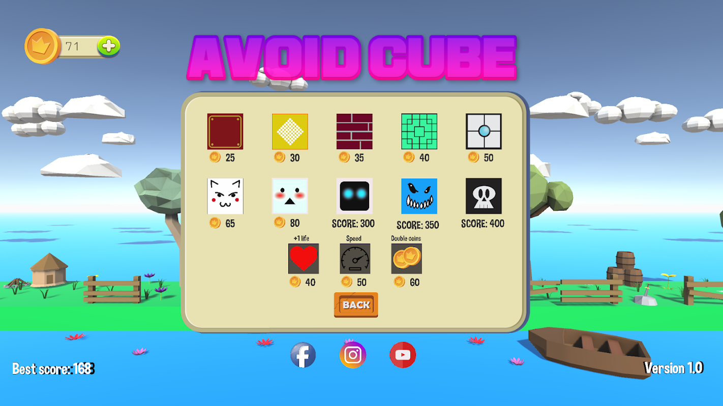Prepare your fingers, and GO! Avoid cubes to get BIG SCORE. You need to collect coins, then you can buy some perfect skins and other things
